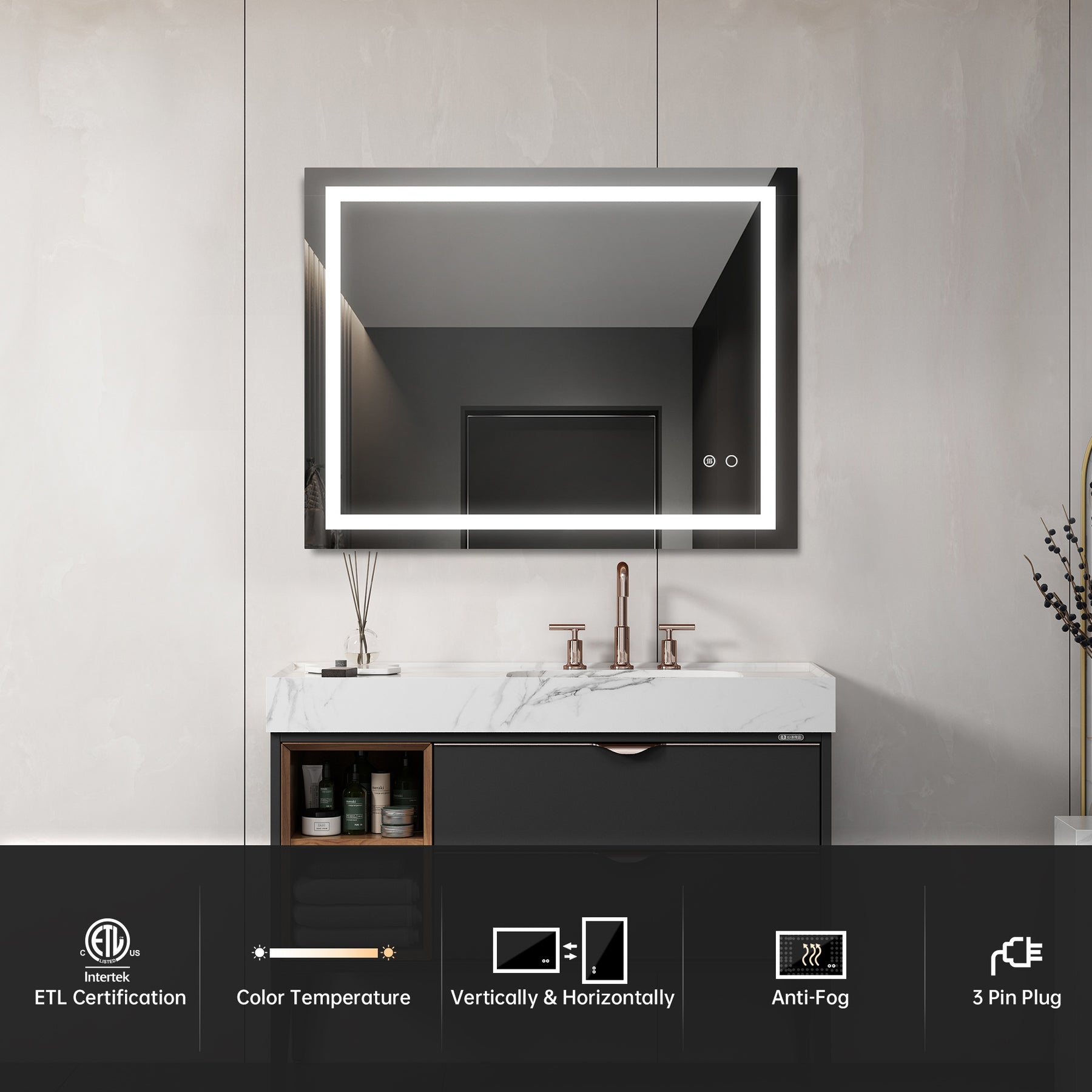 LED Lighted Bathroom Wall Mounted Mirror with High Lumen+Anti-Fog Separately Control+Dimmer Function